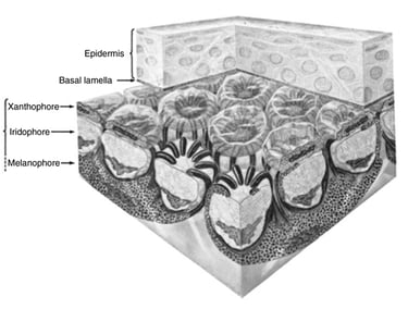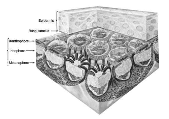Diferentes tipos de cromatóforos (Fuente: Braeunerd)