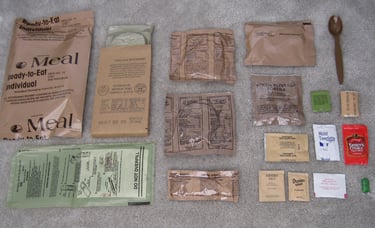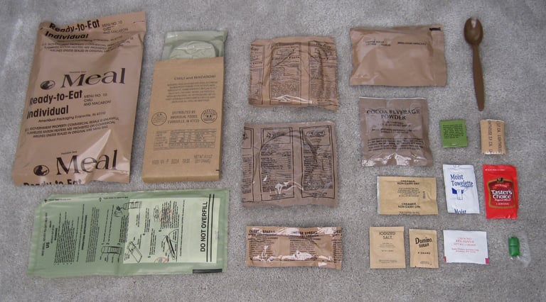 Ejemplo de comidas MRE para el ejército (Fuente: Wikipedia)