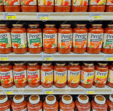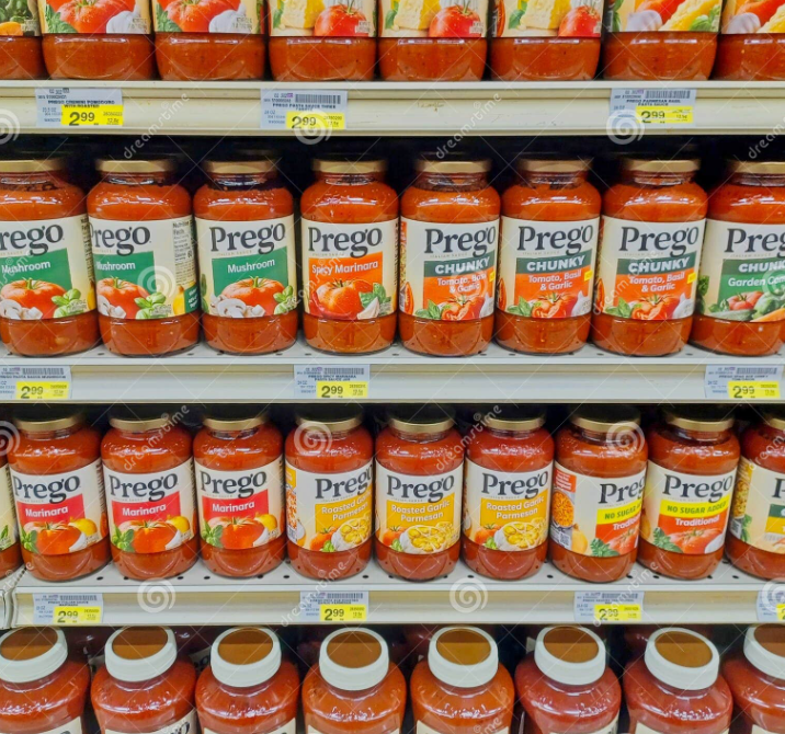 Variedad actual de salsas Prego en un supermercado (Fuente: Dreamstime)