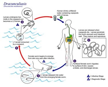 Ciclo de vida de Dracunculus medinensis (Fuente: MSD Manuals)