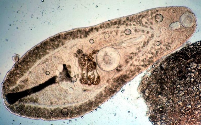 Platelminto de la subclase Digenea, Helicometra sp. (Fuente: Wikipedia)