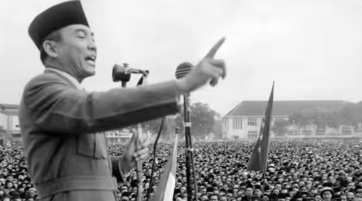 Sukarno dando un discurso en la proclamación de independencia de Indonesia (Fuente: Firstpost)