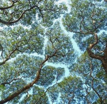 Dosel de un bosque mostrando el mecanismo "evitación de sombra" (Fuente: Allyouneedisbiology)