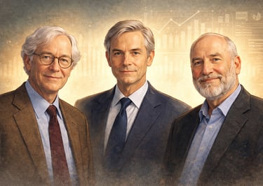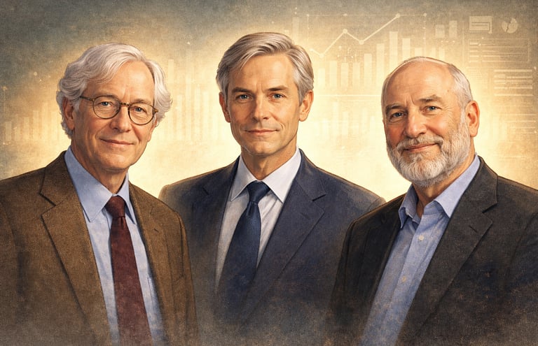 De izquierda a derecha: George Akerlof, Michael Spence y Joseph Stiglitz, ganadores del Premio Nobel de Economía en 2001 (Fuente: Elaborada por Chat GPT)