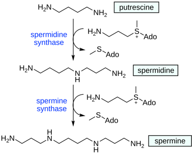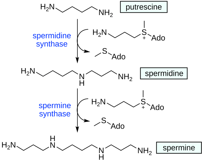 Proceso de biosíntesis de la espermidina (Fuente: Wikipedia)