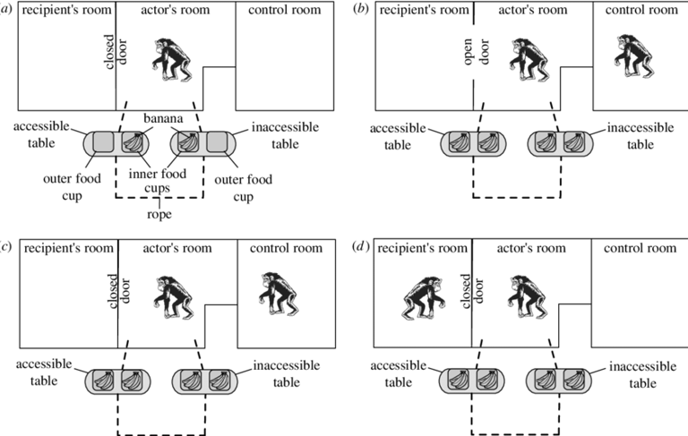 Diseño del experimento de Brian Hare y Michael Tomasello (Fuente: ResearchGate)