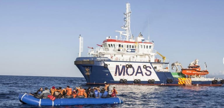 Cuando Rita Catrambone y su marido divisaron el abrigo en el lejano Junio de 2013, tuvieron un momento de revelación. Decidieron invertir sus ahorros en fundar una ONG que se dedicara a rescatar inmigrantes, a la que llamaron Migrant Offshore Aid Station (MOAS). Fue el primer barco privado en buscar embarcaciones de migrantes en peligro con el objetivo de rescatarlos y, durante los siguientes 12 años, se convirtió en un modelo para más de 40 iniciativas similares. Antes de crear esta ONG, los migrantes eran rescatados en el Mediterráneo por la guardia costera, los buques de la marina italiana y maltesa, y algún que otro barco mercante que, por lo general, no estaba equipado para las operaciones de rescate. Aun con la actividad de las ONG, entre 2014 y 2024, 30.000 migrantes perdieron la vida en el Mediterráneo, 20 muertes al día durante más de 10 años. El mismo año de la fundación de MOAS, una embarcación de migrantes naufragó a pocos kilómetros de Lampedusa, causando la muerte de entre 325 y 363 personas, entre ellas muchos niños, una semana después, otra embarcación con más de 200 migrantes naufragó en una zona cercana. Ambos desastres fueron un toque de atención para el entonces Gobierno italiano de centroizquierda que, en respuesta a la indignación popular, lanzó un programa nacional de rescate denominado Mare Nostrum (“Nuestro Mar”). El programa, que contaba con 323 buques, un submarino, helicópteros y aviones de vigilancia, y un presupuesto mensual de unos 12 millones de dólares, buscaba activamente embarcaciones en apuros y llegó a salvar la vida de más de 150.000 personas en tan solo un año. Sin embargo, el programa fue cancelado en 2014 debido a la falta de recursos financieros y de apoyo político. Cuando finalizó el proyecto, MOAS llevaba 2 semanas en funcionamiento y estaba lista para intervenir.