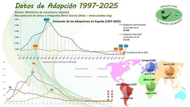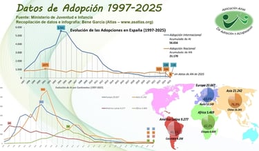 Datos de la evolución de la adopción Nacional/Internacional en España (Fuente: Asatlas)