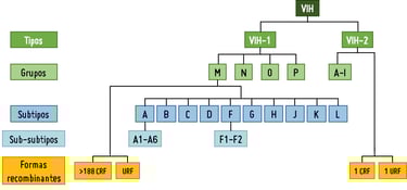 Clasificación de las variantes del virus del VIH (Fuente: Quecumplanmuchosmas)