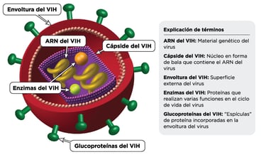 Estructura de una partícula vírica de VIH (Fuente: Hivinfo)