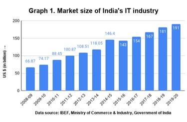 Evolución del mercado de la industria IT en la India (Fuente: IBEF)