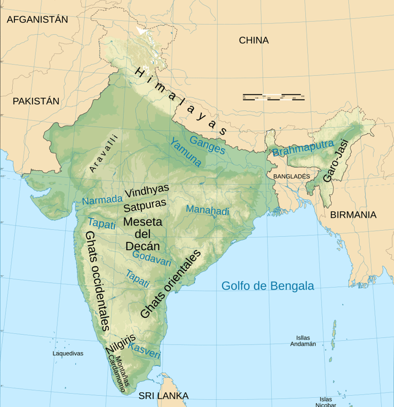 Mapa físico de la India (Fuente: Wikipedia)